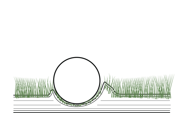 Se la pallina da golf colpisce il green da un'altezza, si crea una buca a forma di cratere. Questo deve essere riparato/rimosso il prima possibile in modo che il green possa continuare ad essere livellato e giocare correttamente.