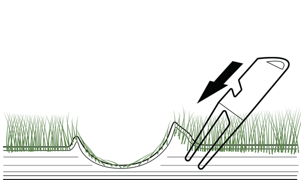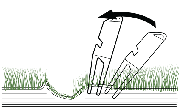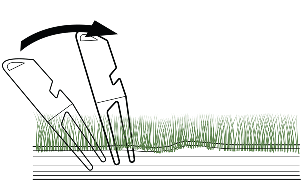 Assicurati sempre che il sollevamento di erba e terreno in superficie costituisca una grave violazione poiché ciò potrebbe strappare le radici.